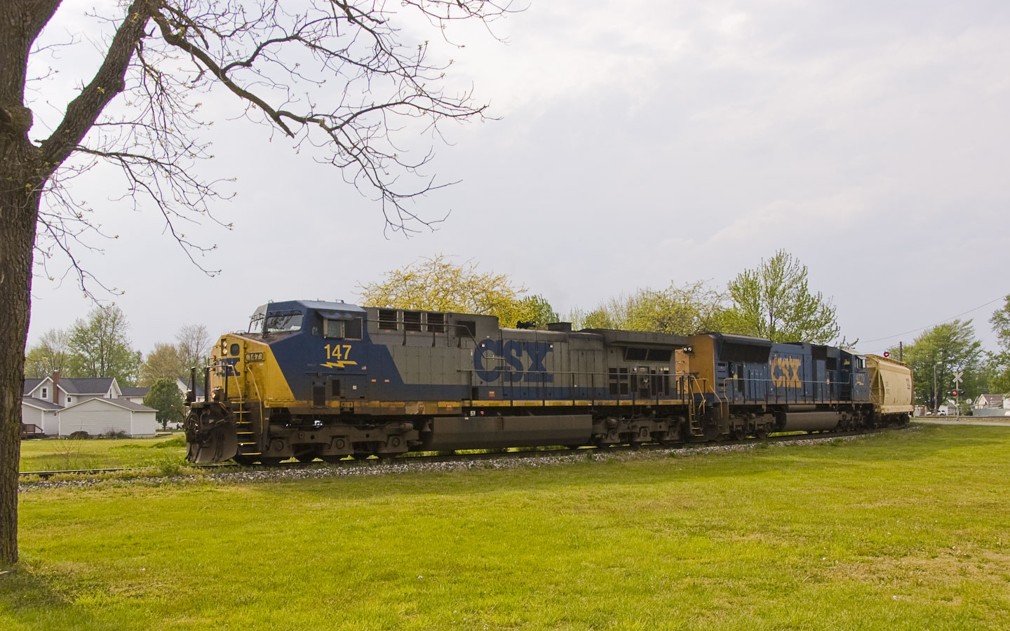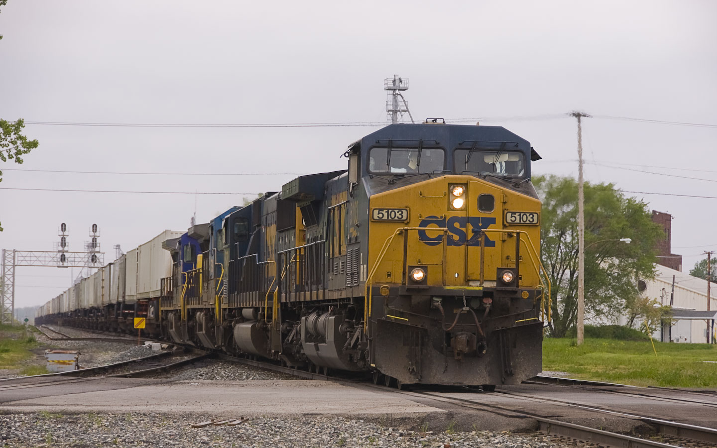 This CSX auto-rack train is coming around the Northwest connector under recently replaced signals and heading North toward Toledo. 10:32am |