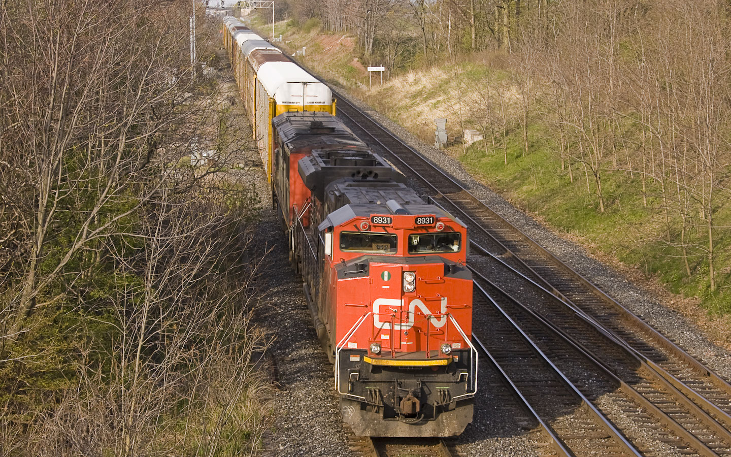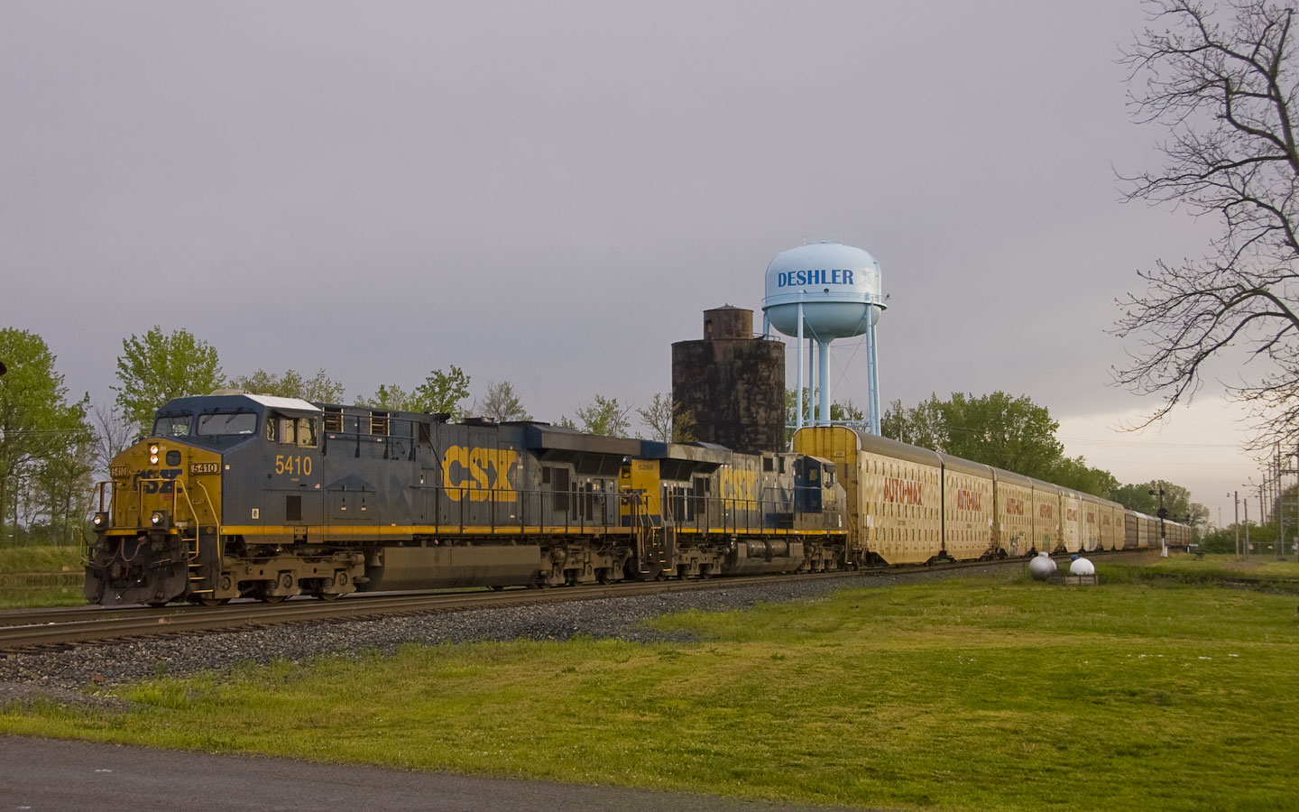 | Auto-racks coming West around the connection to head South on the Toledo Sub. 5:42pm |