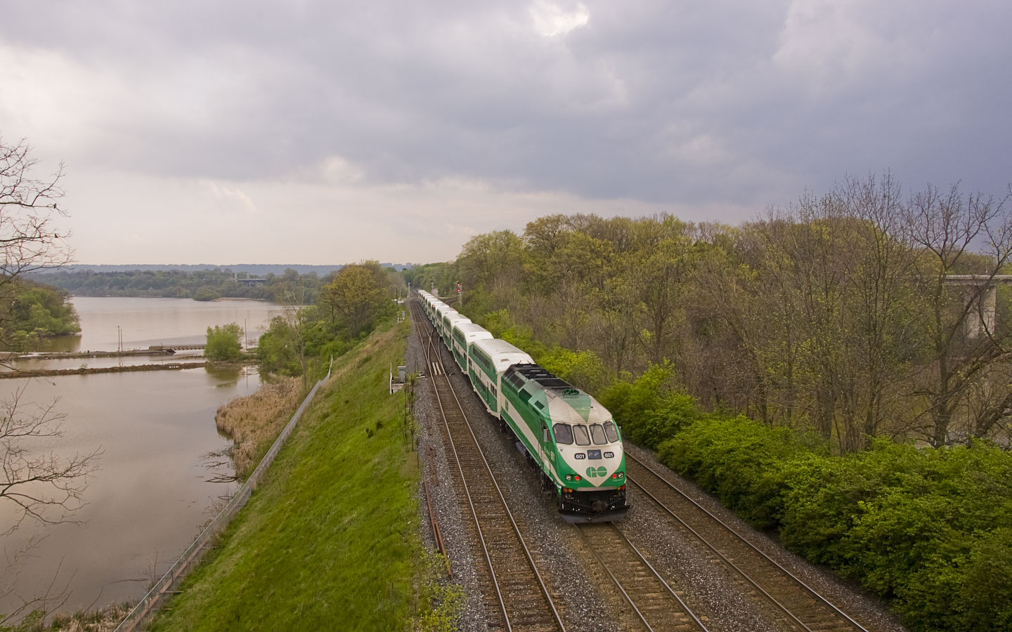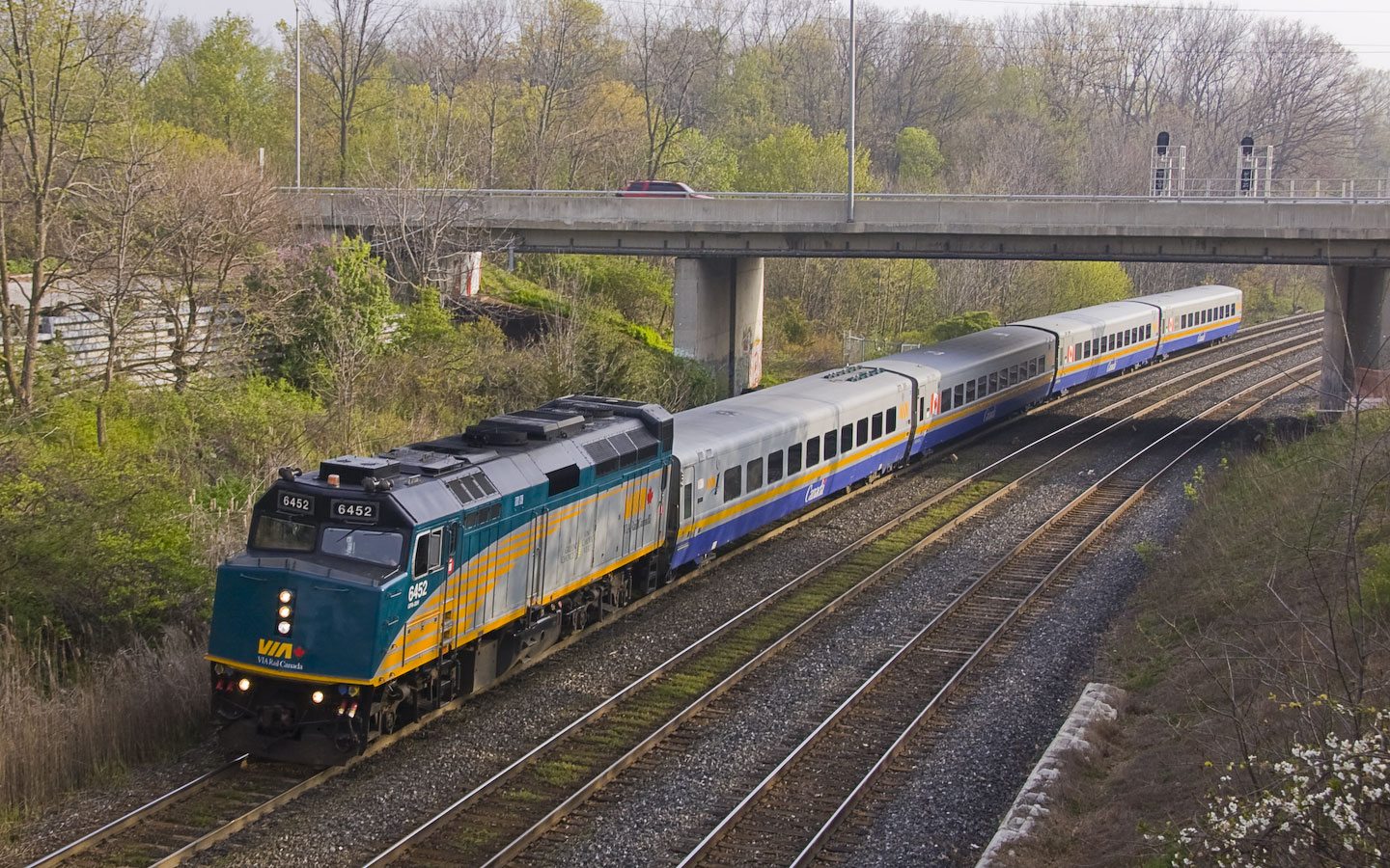 | Thursday morning, May 3rd, we started at the pedestrian bridge at Bayview for the morning parade. Too late for the GO trains, the action was still pretty good. Burlington, Ontario 7:49am |