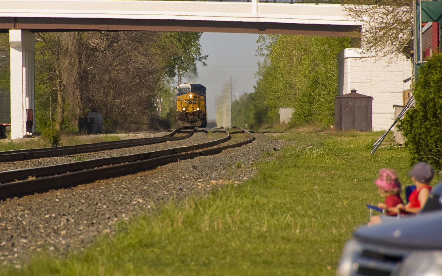 This is a double-track line that sees a good amount of traffic -- no sooner had the Eastbound cleared than we heard the horn of this Westbound. 9:59am |