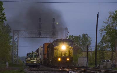 | A heavy drag of coil steel heading up the connection toward Toledo. 6:26pm |